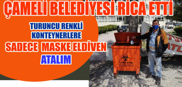 Son günlerde normal Çöp Kutularında Eldiven ve Maske atılması sonucunda virüsle mücadelede aksamaya yol açacağı düşüncesi ile uyarıda bulunan Çameli Belediyesi, ayrıca Tıbbı atık kutularında ise Evsel Çöplerin olduğu görüldü. Konu üzerine başkan Arslan İlçe halkından ricada bulunarak ” Vatandaşlarımızdan ricamız Maskelerimizi ve eldivenlerimizi lütfen İlçemizde belirli noktalara konulan Turuncu Renkli Atık Kutusuna atalım, Maske ve Eldiven harici çöp ve malzeme atmayalım. Atanları ise lütfen uyaralım.” ricasında bulundu.