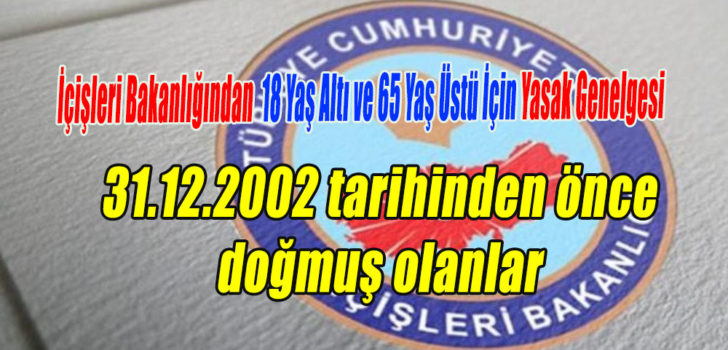 İçişleri Bakanlığı 81 il valiliğine “18 yaş altı ve 65 yaş ve üzeri kişilerin sokağa çıkma kısıtlaması” konulu genelge gönderdi.