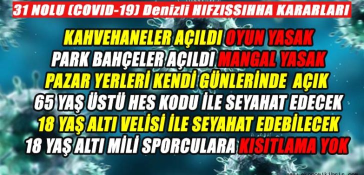 31 NOLU (COVID-19) HIFZISSIHHA KARARLARI