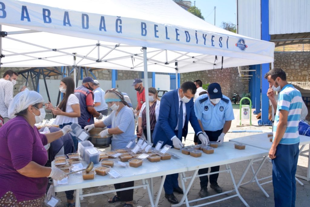 Babadağ Belediyesi Muharrem ayı dolayısıyla aşure dağıtım etkinliği gerçekleştirdi. Babadağ Kapalı Pazaryeri’nde gerçekleştirilen etkinlikte Babadağ Belediye Başkanı Ali Atlı, aşurenin yapım aşamasında da, dağıtım aşamasında da işin mutfağında yer aldı. Çok sayıda Babadağlı vatandaşın ilgi gösterdiği etkinliğe dair konuşan Atlı “Muharrem ayının bolluk ve bereket simgesi aşure dağıtımımızı gerçekleştirdik. Tüm vatandaşlarımıza bolluk ve bereket getirmesini diliyorum” dedi. Atlı ayrıca “Salgın dolayısıyla fiziksel mesafe içinde olsak da dayanışma duygumuz güçlü” sözleriyle zor günlerde dayanışmanın önemini vurguladı.