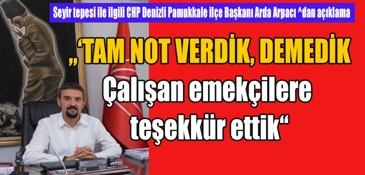 CHP Denizli Pamukkale İlçe Başkanı Arda Arpacı Seyir Tepesi ile ilgili açıklamada bulundu; Başkan Arpacı yaptığı açıklamada ” Basında maksadını aşan şekilde Belediye meclis üyelerimizin tesise tam not verdiği, çok beğendiği şeklindeki haberler gerçeği yansıtmamakta ” dedi.