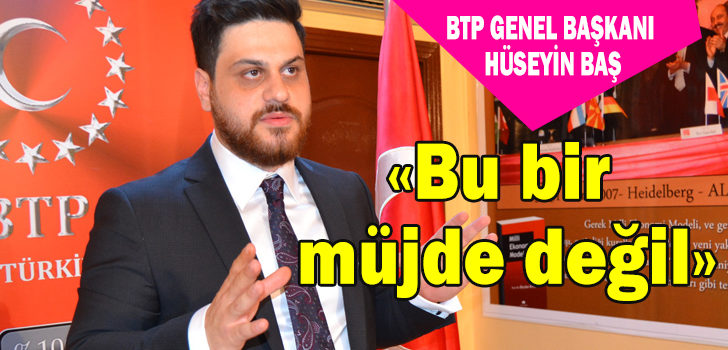 Cuma günü Cumhurbaşkanı Erdoğan tarafından açıklanan ‘doğal gaz müjdesi’ ile ilgili olarak “Bu bir müjde değil, itiraftır” ifadelerini kullanan BTP lideri Hüseyin Baş, şöyle konuştu: “Müjde yeni bir şey değil. Bu müjde değil, bir itiraftır. Bu yapılan açıklama Türkiye’nin yer altı kaynağı olduğunun itirafıdır. Çok ilginçtir. 2015 yılında yapılan genel seçimler öncesinde merhum Genel Başkanımız Prof. Dr. Haydar Baş şunları söylemişti: ‘Şimdi size müjdeyi veriyorum; Bakın bizim iktidarımızda Türkiye olarak yıllık 150 milyar dolar petrol gelirimiz olacak. Tek tek bunları biz tespit ettik. Bu kaynakları yabancı şirketler işliyor. Hani Türkiye’de petrol yoktu? Dikkat edin elimizdeki serveti kaptırmayalım. Biz aç-susuz geziyoruz, bizim servetimizle adamlar bizim üzerimizde ağalık yapıyor. Lütfen buna müsaade etmeyelim.’ Türkiye’nin sahip olduğu yer altı kaynakları sadece yıllık 150 milyar dolarlık petrolle sınırlı olmadığını da sözlerine ekleyen BTP lideri Baş, Milli Ekonomi Modeli’nde geniş bir şekilde yer verilmiş Türkiye’de maden arama ruhsatı almış yabancı şirketlerden bazılarına şu sözlerle dikkat çekti: “Rio Tinto firmasına 30 tane maden arama ruhsatı verilmiş. Cominco firmasına 190 tane maden arama ruhsatı verilmiş. Yamas firmasına 233 tane, Geomar firmasına 3 tane, Toprag 63 tane, Omya 85 tane ve Normandy 149 tane maden arama ruhsatı almış. Bunların kimi Kanadalı, kimi Meksikalı, kimi Alman, kimi Belçikalı vesaire. Biz yer altı zenginliklerimizin tamamını yabancıları zaten vermişiz. Bunlar bizim için yeni gelişmeler değildir.”