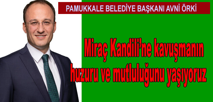 Pamukkale Belediye Başkanı Avni Örki, Miraç Kandili ile ilgili mesaj yayımladı. Başkan Örki, “Bu mübarek günler, dini duyguların en üst seviyede yaşandığı, dinimize olan bağlılığımızın arttığı kutsal günlerdir” dedi.