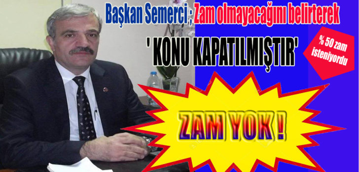 Başkan Semerci ‘ Zam talebinin şu an için olumlu olmadığını belirterek’ almış olduğu kararı sosyal medya hesabından şu cümleler ile duyurdu.