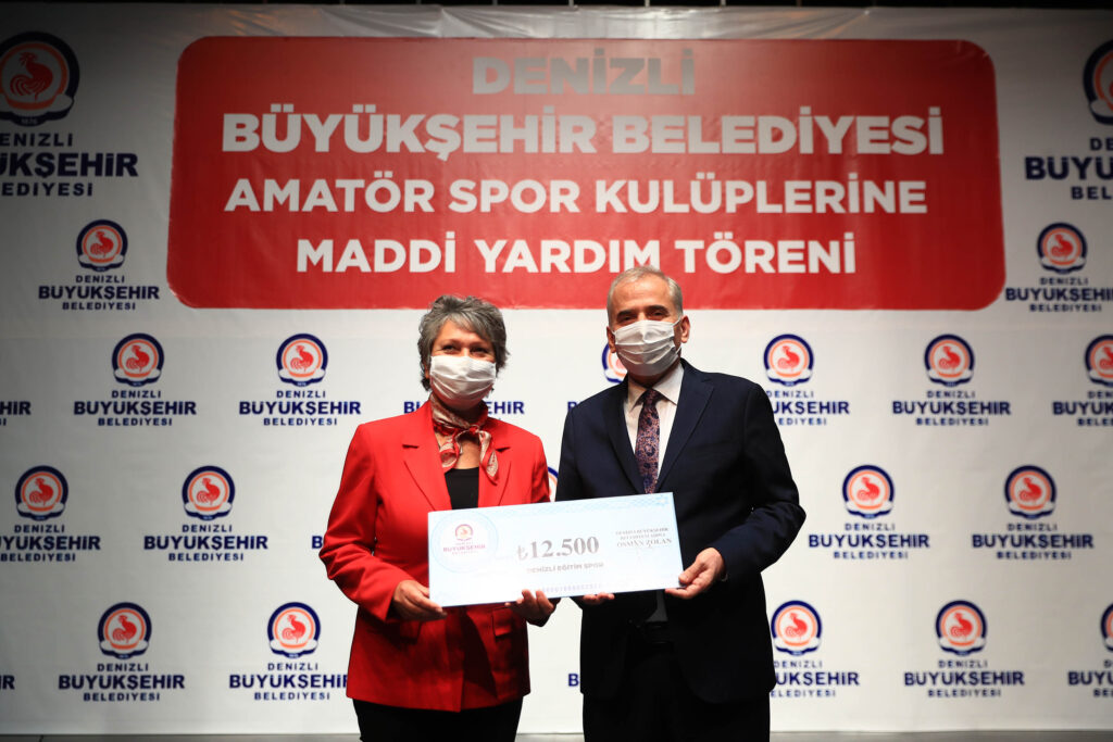 Başkan Zolan, konuşmasını şöyle sürdürdü: “Ben her zaman sizlerin yanında olacağım. Bundan hiç kuşkunuz olmasın. Tabi amatör spor kulüplerimizin yanında profesyonel olarak Denizlisporumuz ve Kızılcabölüksporumuz var. Büyükşehir olarak her zaman kulüplerimize destek olma noktasında gayret sarf ediyoruz. İstiyoruz ki başarılı olsunlar. İmkanlarımız arttıkça sizlere her yıl destek olmaya devam edeceğiz” dedi. Konuşmanın ardından Başkan Zolan, 348 kategoride faaliyet gösteren 117 amatör spor kulübüne toplam 1.200.000 TL’lik çeklerini verdi.