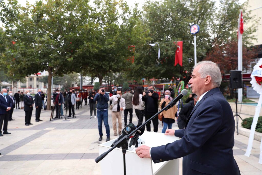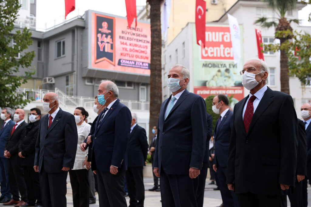 Denizli’de 1876 yılından bu yana hizmet veren belediye teşkilatının 144. yıldönümü törenle kutlandı. 15 Temmuz Delikliçınar Şehitler Meydanı’ndaki Atatürk Anıtı önünde düzenlenen törene, Denizli Milletvekili Nilgün Ök, Büyükşehir Belediye Başkanı Osman Zolan, Cumhuriyet Başsavcısı Ergül Yılmaz, önceki dönem Belediye Başkanı Hasan Gönüllü, Ziya Tıkıroğlu, Ali Marım ve Ali Aygören ile ilçe belediye başkanları, meclis üyeleri, siyasi parti temsilcileri, belediye çalışanları ve vatandaşlar katıldı. Atatürk Anıtı’na çelenk koyulmasıyla başlayan tören saygı duruşunda bulunulması ve İstiklal Marşı’nın okunmasıyla devam etti. Törene katılan herkese teşekkür eden Başkan Zolan, “1876 yılından beri her belediye başkanımız, meclis üyelerimiz ve çalışanlarımız bu şehrin hizmetinde olmuş, imkanlar dahilinde vatandaşlarımızın talebini karşılamak, dertlerini çözmek için gece gündüz çalışmıştır. Hakkın rahmetine kavuşan, önceki dönem başkanlarımız başta olmak üzere meclis üyelerimiz ve tüm çalışanlarımıza Allah’tan rahmet diliyorum, mekânları cennet olsun” dedi.