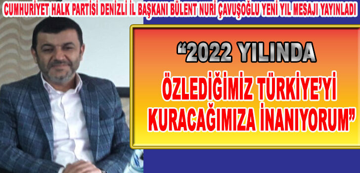 Cumhuriyet Halk Partisi Denizli İl Başkanı Bülent Nuri Çavuşoğlu, yayınladığı yeni yıl mesajında 2022 yılının, umutların yeniden yeşereceği, alçak gönüllülüğün, hoşgörünün, birlikteliğin yılı olmasını temenni etti.