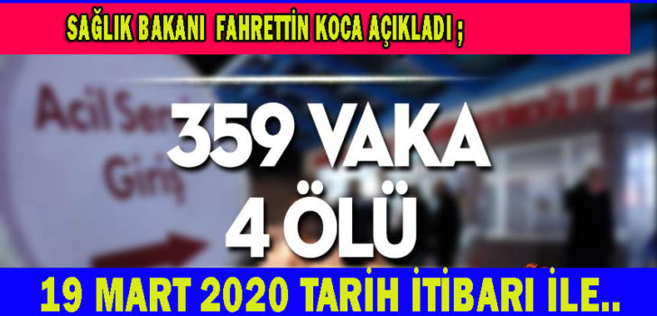 Sağlık Bakanı Fahrettin Koca, “Son 24 saatte yapılan 1.981 TESTTEN 168’İ POZİTİF ÇIKTI. 191 olan hasta sayımız 359’a ulaştı. Hastalarımızdan 85 yaşındaki bir hanımefendiyi kaybettik. Daha önce vefat eden bir hasta COVID-19 olarak değerlendirildi. Toplam kaybımız maalesef 4 oldu. Acımız arttı ama başaracağız” açıklaması yaptı.