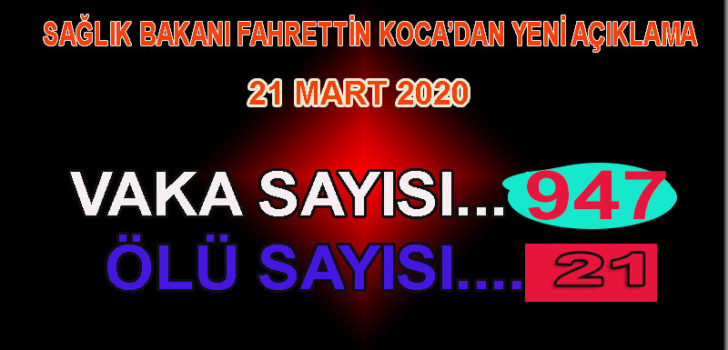 Sağlık Bakanı Fahrettin Koca, Türkiye’deki son corona virüsü verilerini paylaştı. Bakan Koca, 947 vaka ve 21 can kaybı yaşandığını açıkladı.