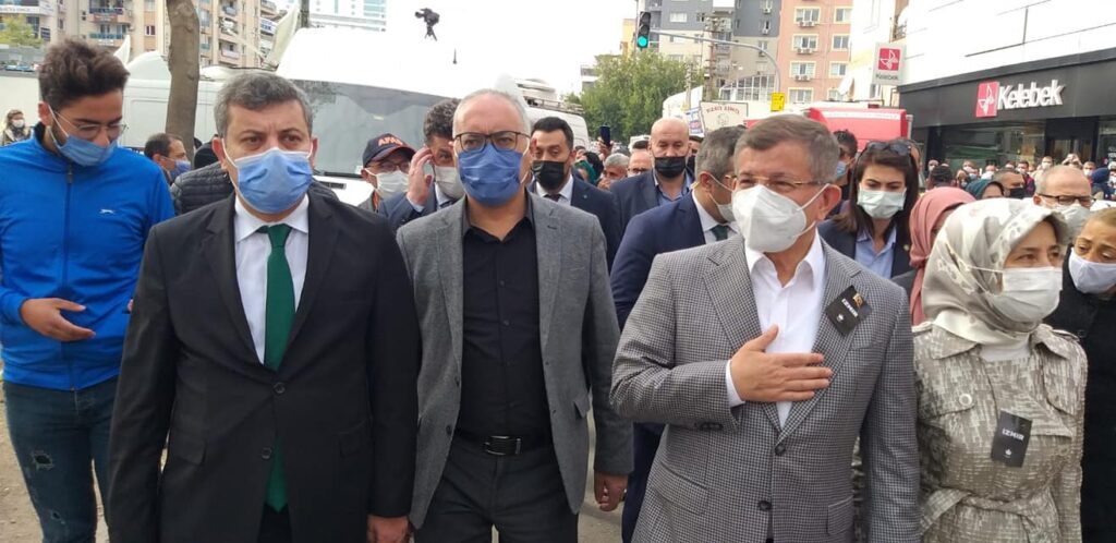 Gelecek Partisi Genel Başkanı Ahmet Davutoğlu ve Denizli İl Başkanı ve Partililer İzmir’de: Gelecek Partisi Denizli İl Başkan Aykut Yıldırım Genel Başkanı Ahmet Davutoğlu’nu İzmir ziyaretinde yalnız bırakmadı. Gelecek Partisi Genel Başkanı Ahmet Davutoğlu, depremin vurduğu İzmir’e giderek bölgede incelemelerde bulundu. Önce Rıza Bey Apartmanının oraya giderek AFAD yetkililerinden bilgi alarak, oradan Ege Üniversitesindeki yaralıları ziyaret etti. Ardından deniz taşkınının olduğu Seferihisar Belediye Başkanı ile birlikte Sığacık’a geçerek programını sonlandırdı. Davutoğlu, incelemelerin ardından kameralar karşısına geçerek bir açıklama yaptı. Sözlerine depremde hayatını kaybedenlere rahmet ve yaralılara acil şifalar dileyerek başlayan Gelecek Partisi lideri, imar yasasının önemine dikkat çekti. Türkiye’nin çok acil bir imar yasası çıkarmak zorunda olduğunun altını çizen Ahmet Davutoğlu, “Herkesi bağlayan, bütün tarafları bağlayan ama en önce de müteahhitleri bağlayan, açık, objektif kurallar koyan bir imar yasası çıkarmadan deprem gerçeğiyle yüzleşmemiz çok zor” dedi. AFAD ve diğer arama kurtarma ekiplerinin son derece özverili çalıştığının altını çizen Davutoğlu, “Arama kurtarma ekiplerimizin sayıları Türkiye ölçeğinde hala yetersizdir. Çok sayıda arama kurtarma ekibine daha ihtiyacımız var. Deprem sonrasında da halkımızın psikolojik rehabilitasyonu için çaba sarf etmemiz lazım” diye konuştu. Genel Başkan Davutoğlu, sözlerini şöyle sürdürdü: “Geçmişte imar barışı adı altın yapılan bazı ruhsatsız binaların dahi kamu bütçe açıklarını kapatmak için, bir kaynak oluşturmak için bir af kapsamına alınmasının zararlarını görüyoruz. Kuralları objektif olarak ortaya konmuş bir imar yasasına ve il bazında şekillenmiş yeni bir anlayışa ihtiyaç var” diyerek alandan ayrıldı.