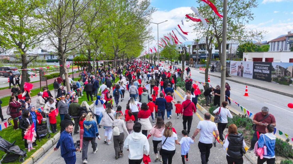 Denizli Büyükşehir Belediyesi, 23 Nisan Ulusal Egemenlik ve Çocuk Bayramı’nın 106. yıl dönümünü, kentin dört bir yanına yayılan kapsamlı bir organizasyonla kutluyor. Program kapsamında düzenlenen “Küçük Adımlar Büyük Heyecanlar” çocuk koşusu, binlerce minik yüreğin ellerinde Türk bayraklarıyla kırmızı-beyaza boyadığı tarihi bir görsel şölene dönüştü. Büyük bir heyecana sahne olan koşunun startı, Denizli Büyükşehir Belediye Başkanı Bülent Nuri Çavuşoğlu ve eşi Nilgün Çavuşoğlu tarafından birlikte verildi. Etkinliğe ayrıca Denizli Büyükşehir Belediyesi Başkan Vekili Ali Marım, Genel Sekreter Bülent Bozbaş, Büyükşehir Belediyesi bürokratları, protokol üyeleri ve binlerce Denizlili katıldı.