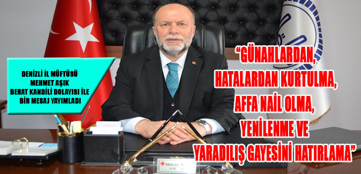 17 Mart Perşembe gecesi Berat Kandili dolayısı ile bir mesaj yayımlayan Denizli İl Müftüsü Mehmet Aşık , Borçtan, suç ve cezadan, hastalıktan kurtulmak anlamına gelen “Berat”, dini anlamda “günahlardan, hatalardan kurtulma, affa nail olma, yenilenme ve yaradılış gayesini hatırlama” demek olduğunu belirterek meajında şu ifadelere yer verdi;