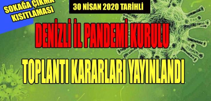 Denizli İl Umumi Hıfzıssıhha Meclisi 1593 sayılı Umumi Hıfzıssıhha Kanunu’nun 23. maddesine göre, Vali Hasan KARAHAN’ın başkanlığında olağanüstü toplanarak COVİD-19 tedbirleri hususunda İçişleri Bakanlığının 28.04.2020 tarihli Sokağa Çıkma Kısıtlaması konulu yazısına istinaden aşağıda belirtilen tedbirlerin alınmasına yönelik toplanmıştır. Bu kapsamda;