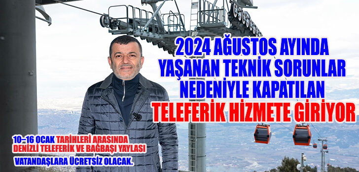 Denizli Teleferik, 2024 yılı Ağustos ayında halatta tespit edilen aşınma ve eskime nedeniyle güvenlik gerekçesiyle hizmete kapatılmıştı. 2025 Temmuz ayında yeni halatın teslim edilmesinin ardından gerekli ekipman temini ve teknik hazırlıklar ile montaj çalışmaları başarıyla sonuçlandırıldı. Yapılan kapsamlı bakım ve yenileme çalışmalarının ardından Denizli Teleferik, 10 Ocak 2026 Cumartesi günü saat 10.00’da yeniden vatandaşların hizmetine sunulacak.