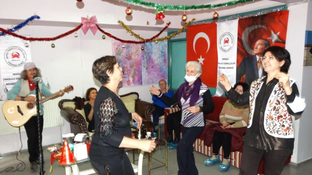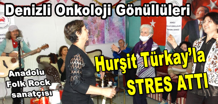 Denizli Onkoloji Gönüllüleri Dayanışma Derneği üyeleri, Hurşit Türkay’ın sahne aldığı yeni yıl eğlencesinde bir araya gelerek stres attılar. Anadolu Folk Rock sanatçısı Hurşit Türkay’ın gitarı ve şarkılarına coşkuyla eşlik eden dernek üyeleri, yeni yıla dans edip şarkı söyleyerek merhaba dediler.