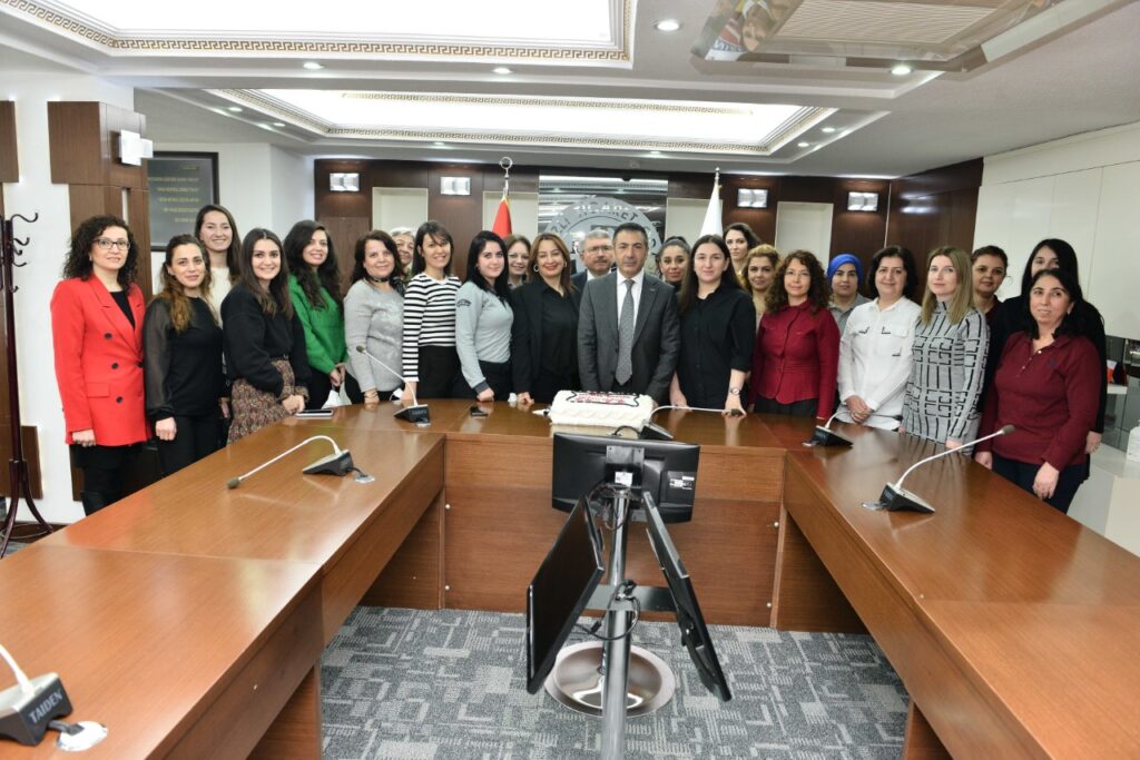 Denizli Ticaret Odası Yönetim Kurulu Başkanı Uğur Erdoğan, 8 Mart Dünya Kadınlar Günü’nde DTO’da çalışan kadınları unutmadı. Kadınları dinledi. Güne özel hazırlanmış pastayı, onlarla kesti. Denizli Ticaret Odası’nın kadın personeline “Türk Kadını barışta, savaşta, işte ve üretimde her zaman her koşulda eşinin yanındadır; en büyük destekçisidir! Biz de her zaman sizlerin yanındayız…