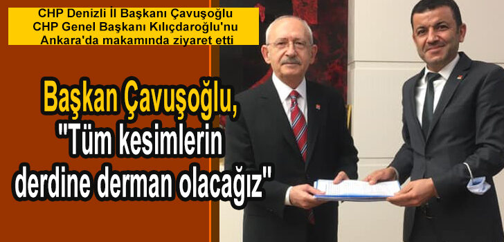 Genel Başkan Kemal Kılıçdaroğlu’nu Ankara’da makamında ziyaret eden Cumhuriyet Halk Partisi Denizli İl Başkanı Bülent Nuri Çavuşoğlu, vatandaş ve esnaf ziyaretlerinde kendilerine iletilen taleplerin yer aldığı raporu Kılıçdaroğlu’na sundular. Başkan Çavuşoğlu, “Tüm kesimlerin derdine derman olacağız” dedi.