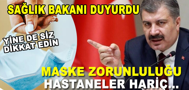 Pandemi nedeni ile 2 yılı aşan bir sürede hayatımızda bulunan tıbbi maske kullanıma zorunluluğunun kaldırıldığını duyuran Sağlık Bakanı Dr. Fahrettin Koca yine de tedbirli olunmasını istedi.