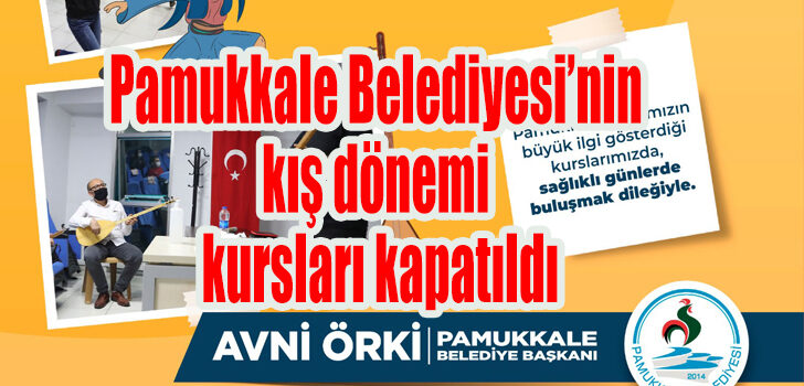 Pamukkale Belediyesi’nin kış dönemi kursları kapatıldı. Pamukkale Belediye Başkanı Avni Örki, “Koronavirüs önlemleri nedeniyle halkımızın büyük ilgi gösterdiği kurslarımızı kapattık. Halkımızın sağlığı her şeyden önemli” dedi.