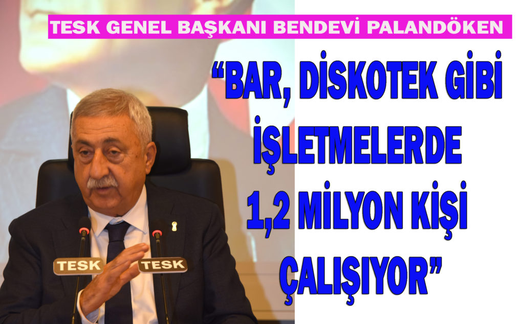 Dünyayı saran korona virüs nedeniyle alınan tedbirlerin desteklediklerini hatırlatan Türkiye Esnaf ve Sanatkârlar Konfederasyonu (TESK) Genel Başkanı Bendevi Palandöken, “İçişleri Bakanlığı ve Sağlık Bakanlığı’nın yaptığı değerlendirme sonucu, Umuma Açık İstirahat ve Eğlence Yerleri olarak faaliyet yürüten pavyon, diskotek, bar ve gece kulüplerinde, vatandaşların çok yakın bir mesafede bir arada bulunmalarının hastalığın bulaşma riskini artıracağı belirtilerek, bu mekânların geçici süreliğine faaliyetlerinin durdurulacağı ifade edildi. Korona virüsü nedeniyle alınan bu tedbirleri sonuna kadar destekliyoruz” diye konuştu.
