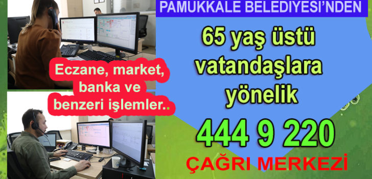 Dünya genelinde her geçen gün etkisini hızla arttıran ve binlerce can kaybına neden olan koronavirüse karşı alınan tedbirler de artıyor. Pamukkale Belediyesi, bu konudaki çalışmalar kapsamında 15 Mart tarihinde Pamukkale Belediyesi Çağrı Merkezini oluşturdu. Sokağa çıkması kısıtlanan 65 yaş üstü vatandaşlara yönelik açılan ve 444 9 220 nolu numaradan ulaşılan Çağrı Merkezi her gün yüzlerce çağrıya cevap veriyor. Pamukkale Belediyesi, 65 yaş üstü ve sokağa çıkması kısıtlı olan ve kimsesi olmayan vatandaşlara yönelik hizmetler kapsamında eczane, market, banka ve benzeri işlemlerinde ekipler yardımcı oluyor. Vatandaşların ulaştığı çağrı merkezine bu güne kadar binlerce çağrı gelirken, Pamukkale Belediyesi yaklaşık 300 kişiye yardım elini uzattı.