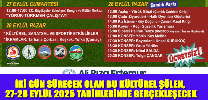 T.C. Pamukkale Belediyesi, Türk kültürünün önemli bir parçası olan Yörük-Türkmen geleneklerini yaşatmak ve gelecek nesillere aktarmak amacıyla büyük bir şenlik düzenliyor. İki gün sürecek olan bu kültürel şölen, 27-28 Eylül 2025 tarihlerinde gerçekleşecek.