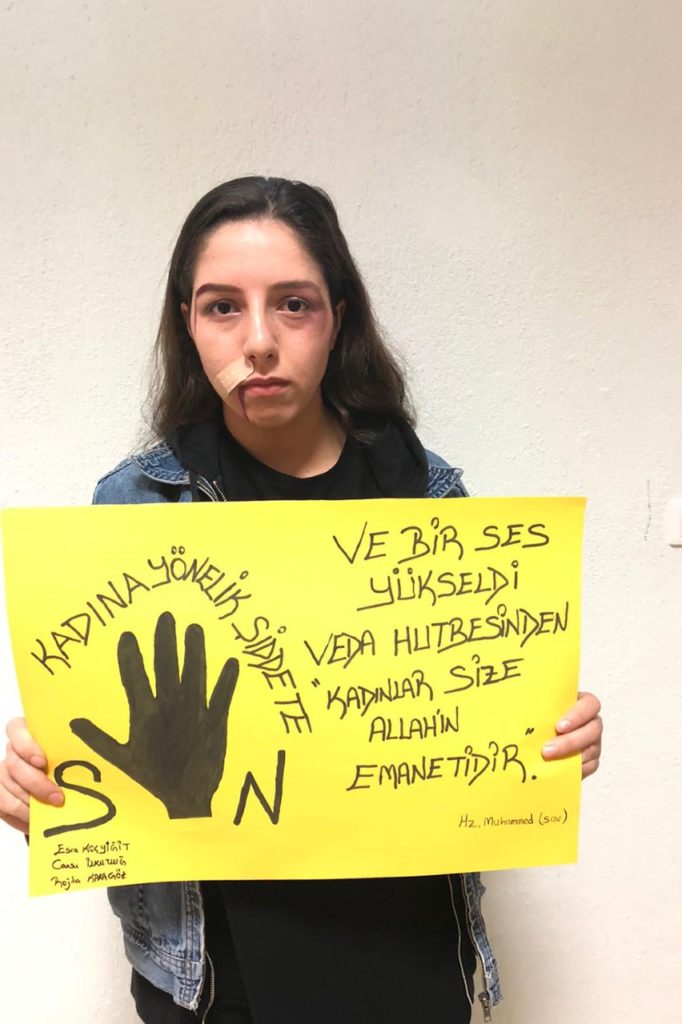 Ülkemizde son zamanlarda çok sık rastlanan kadına karşı şiddet olaylarına tepki olarak Pamukkale Üniversitesi Bekilli Meslek Yüksekokulu öğrencileri ve öğretim görevlilerinin işbirliği ile düzenlenen “Kadına Yönelik Şiddete Hayır” farkındalık oluşturma etkinliği Bekilli MYO’lular tarafından dikkatle takip edildi. Öğrenciler tarafından bizzat hazırlanan afiş ve pankartların yanı sıra yüze uygulanan makyaj ile şiddet içerikli yüz ifadeleri oluşturularak şiddete karşı mücadelenin önemine dikkat çekildi.