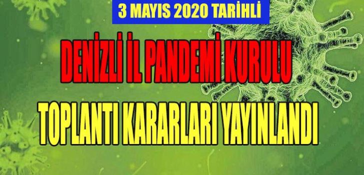 Denizli İl Umumi Hıfzıssıhha Meclisi 1593 sayılı Umumi Hıfzıssıhha Kanunu’nun 23. maddesine göre, Vali Hasan KARAHAN’ın başkanlığında COVİD-19 tedbirleri hususunda İçişleri Bakanlığının 03.05.2020 tarihli Şehir Giriş-Çıkış Tedbirleri konulu genelgesine istinaden olağanüstü toplanmıştır. Bu kapsamda;
