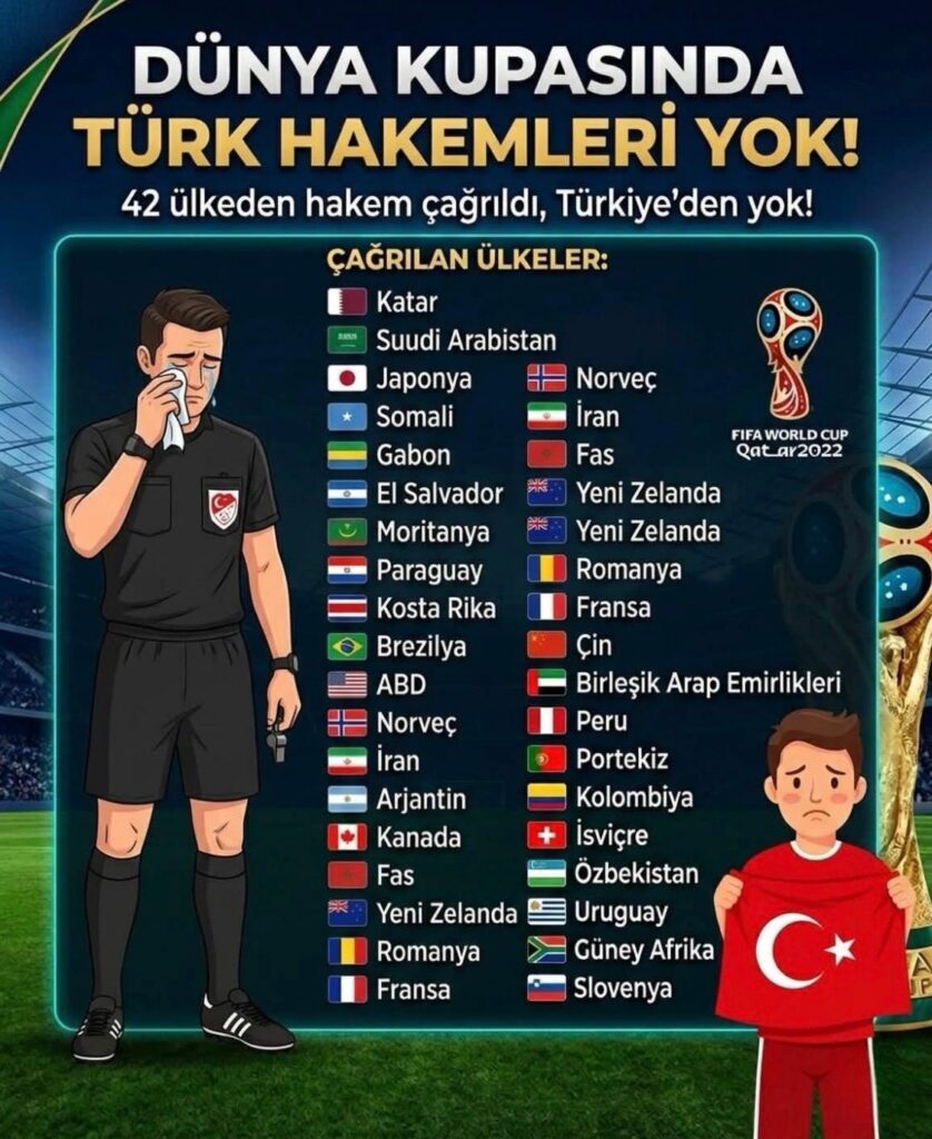 Hakemlerin soyunma odasında esir gibi bekletilmesini sebep olan kişiyi TFF başkanı yaparsan bilgisi olanın yetkisi yoksa, yetkili olanın bilgisi yoksa olacağı budur.Haritada yerini bilmediğimiz ülkelerden bile hakem olur bizde olmaz bu kafayla gidersek askere……..alırız teskere aynen devam haydi hayırlı işler.