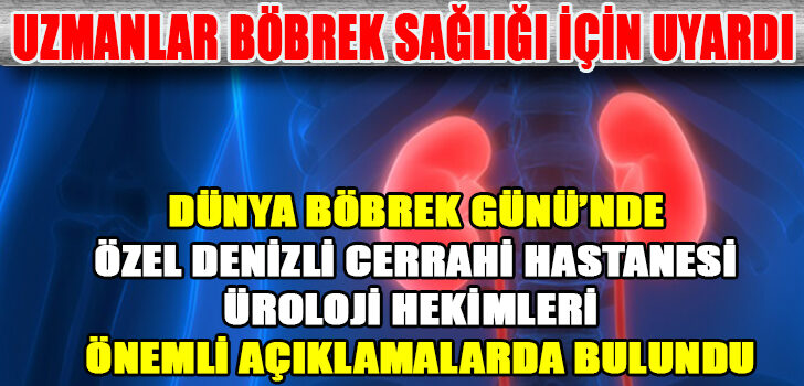 Böbrekler, sağlıklı ve kaliteli bir yaşam sürdürebilmek için gerekli olan çok sayıda işlevi yerine getiriyor. Böbreklerin en önemli görevlerinden biri de, günlük metabolizma sonucunda oluşan zararlı maddeleri idrarla vücudumuzdan uzaklaştırmak. Bu sayede de vücuttaki tüm organların uygun bir şekilde çalışması sağlamak. Düzensiz beslenmeden yanlış aktiviteye, aşırı tuz tüketiminden yetersiz su içmeye kadar günlük yaşantıda yapılan yanlışlar, böbreklere zarar veriyor. Yapılan yanlışlarla birlikte hem dünya hem ülkede böbrek hastalarının sayısı hızla artıyor. Bu sayının dünyada milyonları ülkemizde ise yüz binleri geçtiği düşünülüyor. Böbrek rahatsızlığı ile karşı karşıya kalmamak ve böbrek sağlığını korumak için Özel Denizli Cerrahi Hastanesi’nde görev yapan Üroloji hekimleri konuyla ilgili önemli açıklamalarda bulundu.