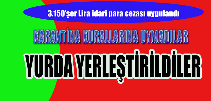 Bu kapsamda 24 Kasım-29 Kasım 2020 tarihleri arasında Pamukkale ve Merkezefendi ilçelerimizde, ikametinde olması gerekirken karantina kurallarına uymayarak dışarıda olduğu tespit edilen 19 kişi, Kredi ve Yurtlar Kurumu’na yerleştirilerek zorunlu karantina sürelerini geçirmeleri sağlanmıştır. Bu kişilere 3.150’şer Lira idari para cezası ve TCK 195. Maddesi (Bulaşıcı hastalıklardan birine yakalanmış veya bu hastalıklardan ölmüş kimsenin bulunduğu yerin karantina altına alınmasına dair yetkili makamlarca alınan tedbirlere uymayan kişi, iki aydan bir yıla kadar hapis cezası ile cezalandırılır.) gereğince savcılığa suç duyurusunda bulunulmuştur.
