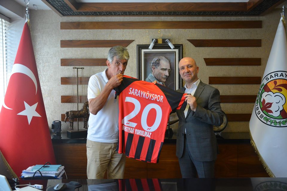 Ziyaret sonunda Başkan Özbaş, Yorulmaz’a üzerinde isminin yazılı olduğu 20 numaralı Sarayköyspor formasını hediye etti.
